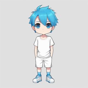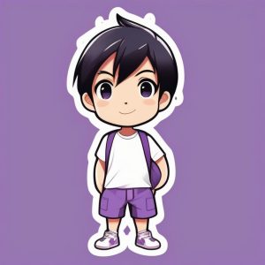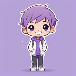 Minimalist Chibi Anime Boy with Short Purple Hair