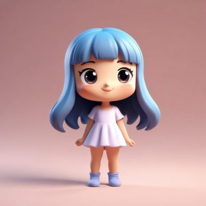 A cute chibi scientist girl, full body standing, wearing a lab coat, holding a glowing beaker, with an intense expression of curious and focused exploration on her face. The image features smooth clay material, reflecting a unique blind box toy quality. Generated by C4D and Octane render, boasting 8k high detail. The background is a simple, clean, completely empty solid color background, no patterns, No textures. Utilizing soft studio lighting and ray tracing technology, creating a soft pastel colors atmosphere.
