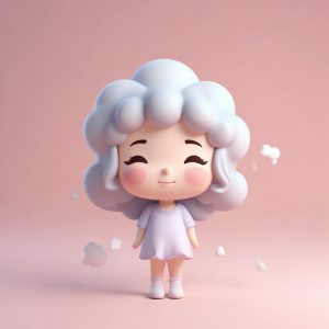 一个可爱的Q版科研女孩, 全身站立, 穿着实验服, 拿着一个发光的烧杯, 脸上带着强烈的好奇和专注的探索表情。图像采用了光滑的粘土材质, 呈现出盲盒玩具的独特质感。由C4D和Octane render生成, 拥有8k高细节。背景是简单、干净、完全空白的纯色背景, 无图案, 无纹理。使用柔和的摄影棚灯光配合光线追踪技术, 营造出柔和的色彩氛围。
