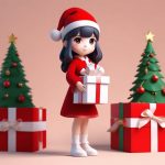 AI生成一个全身站立、拉着巨大格纹围巾假装生气的Q版女孩。使用8K、光线追踪和C4D,捕捉她微妙又可爱的表情。