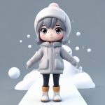 AI绘画提示词(中文) – C4D高光泽:Q版女孩的灯笼袖冬装与俏皮眨眼