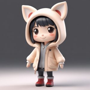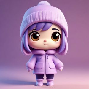 AI绘画提示词(中文) – C4D光追:Q版女孩吹着热气暖手的超可爱造型提示词