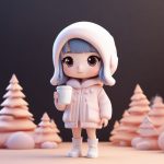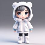 AI art prompt(English) – Winter Sweet Style: Prompt for Chibi in a Teddy Bear Coat and Snow Boots Hugging Her Knees