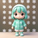 为了表现冬日的运动感,我们让Q版女孩穿上可爱的滑雪装,戴上夸张的滑雪镜,并做出一个高举双手的兴奋跳跃姿势。Pop Mart风格强调简洁背景,使观众的注意力完全集中在角色生动的表情和复杂的冬装细节上。