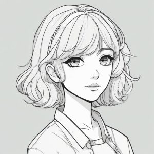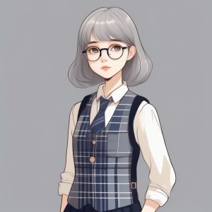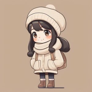 Girl portrait, solo focus, Anime minimalist style, illustrating a Y2K aesthetic chibi. Low saturation macaron color palette, desaturated hues. Thick bold outlines frame the character. Cel shading applied over flat color filling texture. Background is simple, clean, solid color, completely empty, no patterns, no details. Minimalist style girl portrait, vintage fashion.