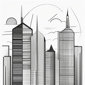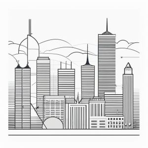 AI art prompt English:cityscape line art poster, skyline silhouette, minimalist architecture, monochrome, clean lines