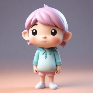 A full body cute chibi basketball player, mid-air (not standing), performing a perfect dunk, showing an intense and focused expression. This 3D render is characterized by a detailed clay material texture, reminiscent of a blind box collectible. High detail, 8k quality, rendered in C4D and Octane render. Soft studio lighting and ray tracing emphasize the pastel colors of the jersey. Background: solid color, clean, simple, completely empty, no patterns, No textures.