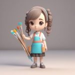 AI绘画提示词(中文) – 甜美系Q版:戴着巨大蝴蝶结的冬装女孩,害羞表情