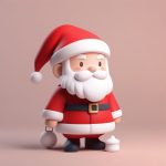 AI生成一个全身站立、用手遮住嘴巴偷笑的Q版女孩。搭配巨大蝴蝶结和冬装,使用粘土材质和粉彩配色。