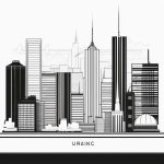 futuristic city, line art poster, clean vector lines, monochrome, high contrast, modern architecture, minimal detail