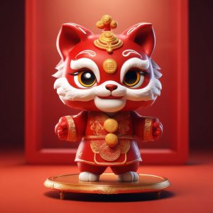 为了迎合春节或新年搜索热度,我们设计了一款融合了旗袍元素的冬季服饰,主色调为喜庆的红色。女孩做出了微微鞠躬的拜年姿势,表情恭敬可爱。金属色的点缀和服装的精致纹理通过8K Octane渲染得以展现,使其成为一个具有收藏价值的节日盲盒。