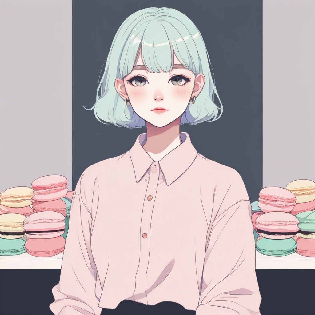 A solo minimalist anime少女in a single subject portrait, centered on a clean and simplified composition. The scene features a pastel macaron color palette with low saturation tones, creating a soft and delicate aesthetic. The background is a solid, clean color with no patterns or details, ensuring the focus remains entirely on the character. This design emphasizes minimalism while maintaining a sense of beauty and uniqueness.