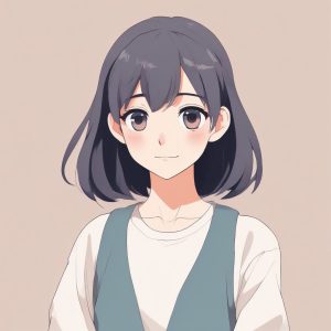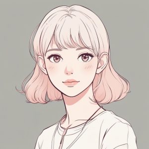 A minimalist anime portrait of a cute girl, solo subject on a solid color background. The character design features a charming, soft cel shading style and delicate pastel colors with low saturation. The scene is clean, simple, and completely empty, focusing all attention on the subject.