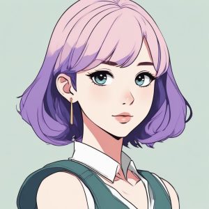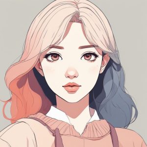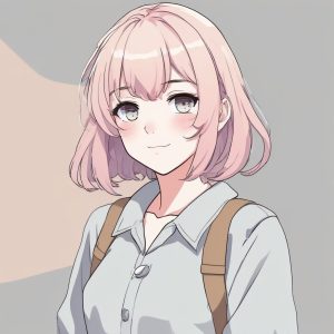 一位极简少女动漫肖像,可爱的她在纯色背景下展现出时尚气息。采用Anime minimalist style, 单一主体,人物独立,以赛璐璐上色风格呈现,配色温柔低饱和度,使用马卡龙色系。背景为纯色、干净整洁,没有任何图案或细节。