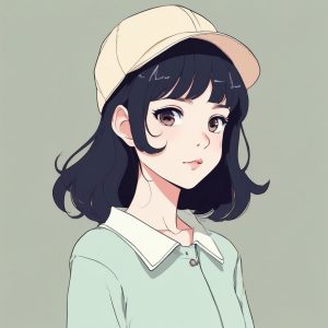 一个极简可爱时尚的动漫女孩肖像,纯色背景。采用Anime minimalist风格,单人独照,Cel shading技术渲染,使用马卡龙色系和低饱和度配色方案。背景为纯净、简洁的单一颜色,没有任何图案或细节。