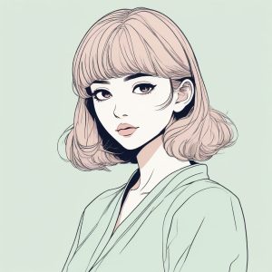 A single subject anime minimalist portrait of a stylish Japanese fashion girl, rendered in a clean and simple line art style with cel shading techniques. The color palette features soft pastel tones reminiscent of macaron colors with low saturation. The background is a solid, pure color, completely empty without any patterns or details, creating an elegant and sophisticated atmosphere.