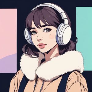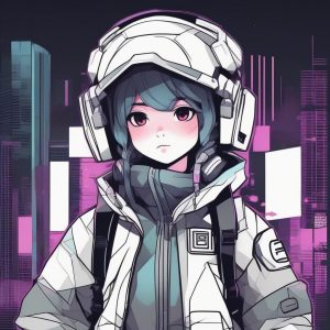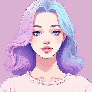 一张极简动漫风格的精致肖像,主角是一个眼睛拥有明亮、水晶般宝石质感的女孩。她戴着简单的珍珠项链。马卡龙调色板偏冷色调,以冰蓝色、淡紫色和微妙的银色为主。插画利用干净的线条和赛璐珞着色风格创造出独特、抛光的色块,呈现在干净的纯灰紫色背景上。具有漫画美感。