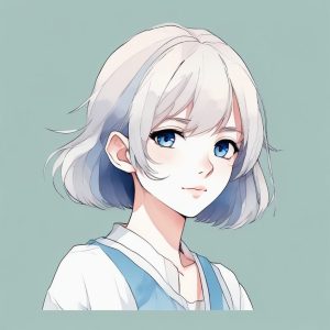 A minimalist style portrait of a serene anime girl with a lo-fi film aesthetic. Soft macaron color palette with desaturated greens and creams. Clean lines and a delicate solo subject focus. Exquisite cel shading style is subtle yet effective. Manga inspired illustration with a calm expression. Set against a clean solid sage green background, evoking a peaceful atmosphere.