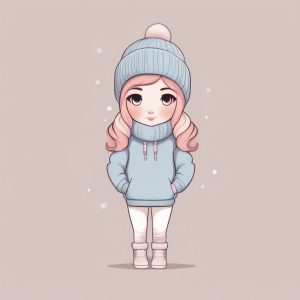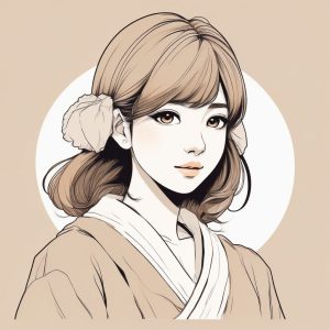 A stylish young Korean-Japanese girl in a minimalist anime art style, featuring a clean and bold composition. The design incorporates soft, low-saturated pastel colors with a solid background of fresh tones. Her fashion-forward appearance exudes youthful energy and modern elegance.