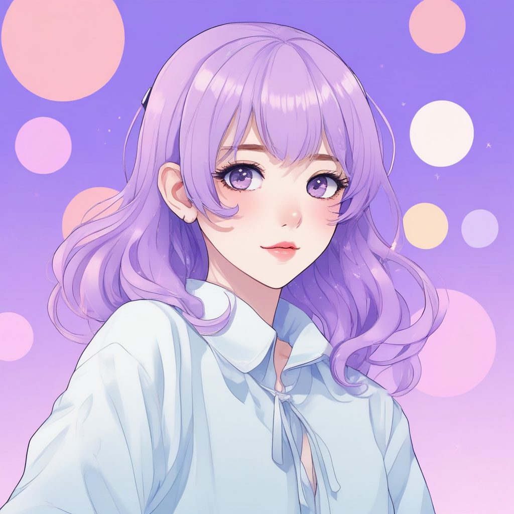 一位美丽活泼可爱的动漫女孩精致肖像。画面充满了梦幻的糖果色调,韩流时尚感十足。采用赛璐珞上色与厚涂光影结合的方式,展现出晶莹剔透的肤色和富有层次感的发丝。线条流畅、构图简洁,具有超现实的流行美学。背景是干净简单的纯淡紫色,整体画面高清,充满了清新的治愈感。