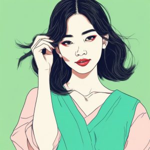 一个极简风格的动漫肖像,一个留着利落波波头的女孩,发色是充满活力的姜黄色。漫画风格由干净的线条和单人焦点定义。她穿着一件简单的白色高领毛衣。调色板由杏色和奶油色等温暖的马卡龙色组成。赛璐珞风格在纯色柔橘色背景上创造出现代感。