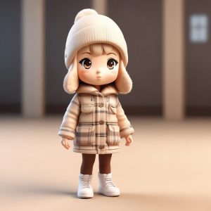 一个可爱时尚的动漫Q版女孩,全身站立,穿着深蓝色的冬日斗篷和可爱的巫师帽。她表情神秘且专注,手持一个正在发光的水晶球。强调大头小身体的chibi风格,具有光滑的黏土材质和盲盒手办的审美。这是一个高细节的8K 3D渲染,使用C4D和Octane渲染,通过光线追踪和柔和的工作室照明突出水晶球的透明感。颜色使用神秘的粉彩色调。背景是纯净的深紫色,简单干净,没有图案或纹理。