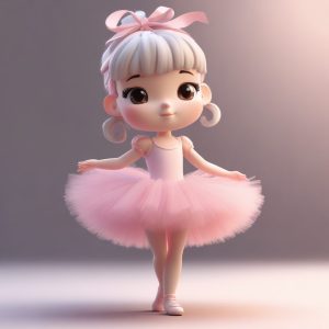 一个Q版极简风格单体少女,全身以单腿站立的平衡姿态。她穿着白色的芭蕾舞紧身衣和蓬蓬裙,脚穿芭蕾舞鞋,表情专注而认真。图像是精致的3D渲染,粘土材质,纯净的白色粉彩颜色,通过C4D和Octane渲染、光线追踪实现8K高细节。背景为干净的纯浅灰色,柔和的摄影棚灯光营造出优雅的艺术氛围。