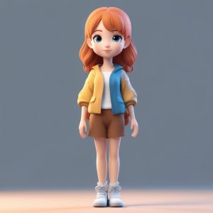 A cute chibi girl wearing winter clothes, standing with a charming full-body shot. Rich expressions and solid color background make her pop against the scene. Designed with blind box aesthetics, featuring big head and small body proportions. This high-detailed 8K render captures her lively pose using C4D and Octane Render techniques, soft studio lighting, and ray tracing for realistic effects.