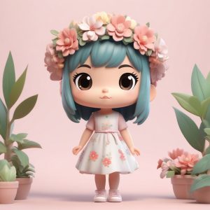A cute chibi, minimalist style, single subject, solo, full body standing figure. She is wearing a delicate floral print dress, a straw hat, holding a small wicker basket filled with wild flowers, displaying a peaceful and content expression. exquisite 3D render, clay material texture, soft pastel colors (earthy, gentle palette). C4D, Octane render, ray tracing, high detail, 8k. Background: solid color, clean, simple, completely empty, no patterns, No textures. Soft studio lighting highlights the natural textures. Blind box aesthetic.