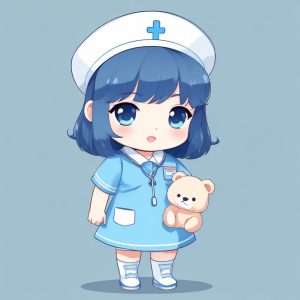 💡为了打破职场严肃的印象,我们用Q版和高饱和度的纯色背景来平衡。这个角色的挑战在于制服的材质对比,需要光线追踪技术来完美呈现。全身立绘非常适合用于制作个人工作相关的插画Logo。✨