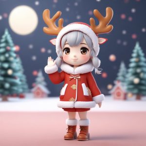 🌟梦幻雪花主题!一个可爱时尚的动漫Q版 chibi girl,全身站立,伸出手接住一片晶莹的雪花,表情充满好奇。高细节3D render,Octane渲染下的雪花细节超清晰。纯色背景突出冬日梦幻感。❄️