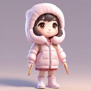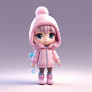 高级感AI捏人:Q版女孩穿oversize毛衣,慵懒风全身像,C4D粘土美学