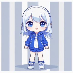 A full body standing 3D render of a fashionable chibi girl, with the signature big head and small body proportion, styled as an exquisite blind box figure. She is wearing a stylish beanie hat, displaying a calm and fashionable expressive face. The illustration uses professional Octane render and ray tracing, highlighting detailed clay material and perfect geometry. Soft studio lighting creates subtle light and shadow effects, using monochromatic pastel colors. High detail 8K render. Background: solid white color, clean, simple, empty, No textures, no patterns.