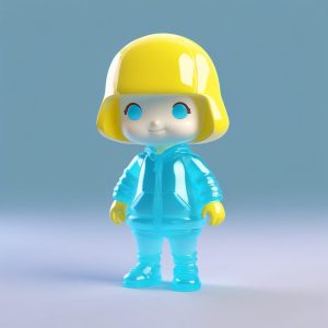一个可爱的、高度风格化的、单独的、全身站立的Q版人物,具有干净、流畅的动漫般线条。以严格的极简风格渲染成8K高细节的盲盒手办。具有逼真的、光滑的粘土材质纹理和明亮的马卡龙色(浅蓝色和白色)。3D渲染使用C4D、Octane渲染和微妙的光线追踪来强调柔和的工作室灯光和光滑的表面。背景:简单、纯浅天蓝色。