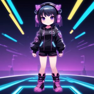 谁说 Q 版只能可爱? 加入了赛博朋克元素后, 角色立刻变得酷炫起来。光线追踪技术完美还原了金属零件的折射效果。✨