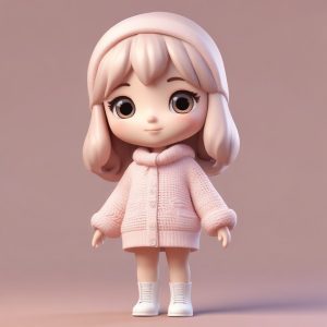 萌宠联名款!戴鹿角头箍的Q版女孩,粉嫩色系,C4D建模级全身像