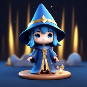 A full body standing photo of a charming chibi witch/magic girl, rendered in the highly sought-after blind box aesthetic. The character design emphasizes a cute clay texture with perfectly rounded features. Achieved using C4D and Octane render engines for high-fidelity 3D rendering. She wears an elegant magical gown, a detailed pointed hat adorned with stars, holding a magic wand, with sweet expressions and rich details. The scene uses Ray tracing for precise global illumination and soft studio lighting, showcasing vibrant pastel colors. Rendered in high detail at 8K resolution. The background is clean, simple, solid color, completely empty with no patterns, focusing entirely on the figure.