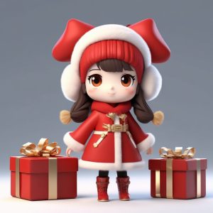 🧧Q版新年喜庆娃娃:全身站立,红火粘土公仔盲盒提示词!