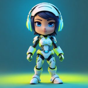 一张可爱、单人主题的全身站立照, 描绘了一个蒸汽波美学风格的Q版形象:马卡龙粉和蓝色渐变服装, 带有几何图案和微妙的霓虹点缀。这个极简形象是8K高细节3D渲染, 模仿光滑的塑料盲盒玩具。柔和的摄影棚灯光与强大的光线追踪增强了梦幻般的渐变效果。背景是干净的纯亮珊瑚粉。