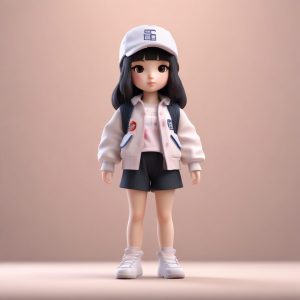 💖一键生成超萌的日韩潮流Q版时尚美少女,盲盒风格全身像,C4D高细节渲染,纯色背景最适合做头像。