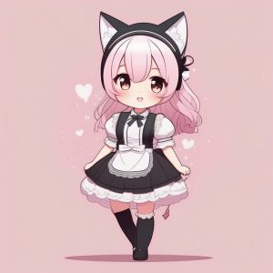 🐈⬛卡哇伊猫耳娘!全身站立,拥有毛茸茸的粘土猫耳和尾巴,搭配日系校服裙。独家Octane渲染的柔和光影,强调 pastel colors 的治愈感。超适合二次元头像!8K!🎀