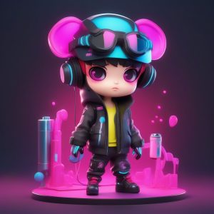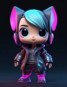 酷飒与可爱并存!Q版赛博朋克少女,全身潮流穿搭,机能风外套+霓虹光带。✨3D渲染的粘土质感搭配Octane的未来感光线追踪,打造独一无二的盲盒潮玩!👾