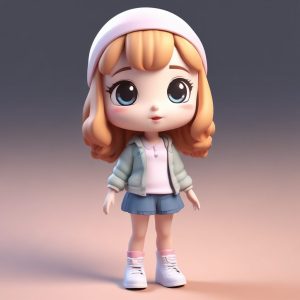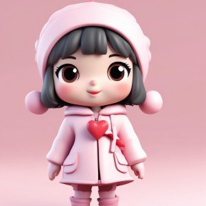 一个极简主义的Q版动漫角色,单人,穿着甜美的粉色洛丽塔连衣裙,配有精致的蕾丝和巨大的蝴蝶结头饰,她手中捧着一个装饰精美的小蛋糕。这是一张全身站立照片,可爱,拥有独特的盲盒美学。图像是8K 3D渲染,通过C4D和Octane渲染器制作。柔和的摄影棚灯光和光线追踪,确保了奶油色调的完美呈现,背景是干净的纯薄荷绿色。