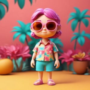 🌴夏日度假Q版:太阳镜与花衬衫,元气满满的3D渲染!