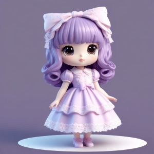 A cute, full body, standing chibi minimalist style anime girl, solo subject, displaying an intellectual look. She wears a dark red plaid academy Lolita overall dress and a small leather satchel, wearing round glasses. The figure uses clay material texture and soft vintage pastel colors, in a blind box aesthetic. This is an 8K high detail 3D render by C4D and Octane, emphasizing facial features using soft studio lighting and ray tracing. Background: A completely clean, simple, solid light beige color.