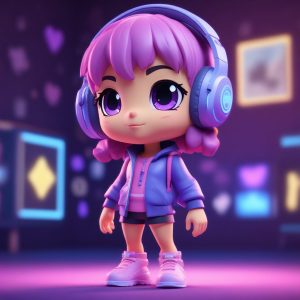 一位赛博朋克极简风格的Q版女孩,单人,全身站立。她穿着战术装备,带有发光的霓虹灯点缀和机械肢体,所有元素都以统一的粘土材质纹理渲染。调色板高对比度,以电光蓝和洋红色为主。利用3D渲染、C4D和光线追踪来捕捉锐利的细节和反光表面。在纯深灰色背景上使用柔和的摄影棚打光。8k高细节。