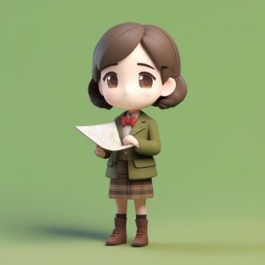 A cute chibi, solo single subject, full-body standing photo of a gentle female teacher. She wears a minimalist style tweed blazer, a checkered pleated skirt, and small gold-rimmed glasses. The 3D render utilizes Octane render and C4D to achieve high detail, 8k resolution, focusing on the texture of the tweed. The pastel colors palette is warm and inviting. Soft studio lighting and ray tracing enhance the depth. Designed as a blind box collectible. Clean solid color background (warm beige).