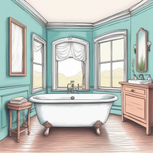 Minimalist staircase corner interior illustration. The image is hand drawn, featuring a distinctive crayon style and soft edges. The palette includes warm pastel colors, emphasizing clear textured paper, creating a whimsical storybook style atmosphere.