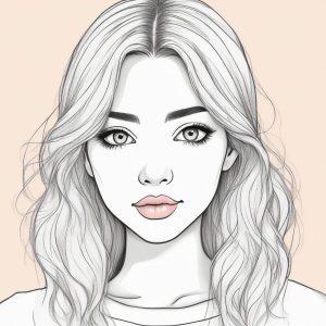 An exquisite portrait of a stylish woman, presented as a hand drawn illustration with a minimalist sketch aesthetic. The artwork emphasizes clean lines and a sophisticated colored pencil and crayon style. Set on heavily textured paper, the storybook style solo subject radiates a timeless charm. The background is a stark, clean solid color, making the hand-drawn details of the portrait stand out.