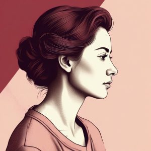 A minimalist style exquisite portrait rendered as a hand drawn illustration, featuring a strong vintage aesthetic. The color palette uses dusty, low-saturation earth tones, integrated with a subtle grain and noise texture. The image emphasizes the textured feel of colored pencil and crayon style on textured paper, while maintaining clean lines. It captures a deep, nostalgic storybook style. Depicting a woman in profile, deep in thought. Solo subject against a clean solid dark yellow background.